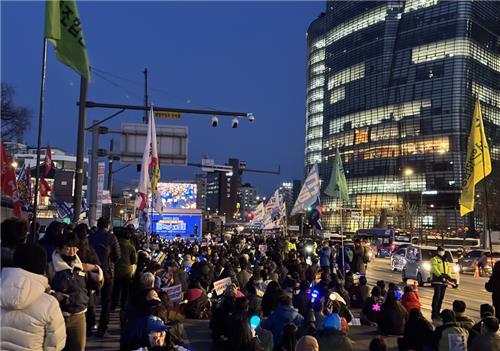 탄핵 찬반 집회, 윤석열 대통령 퇴진 요구하며 도심 행진