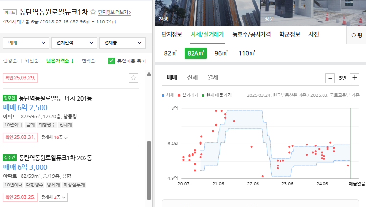인근의 신축급인 동탄역 동원로열듀크 1차의 경우 59m2 중층 이상 6.3억부터 시작하고 전세가도 동탄 금강펜테리움과 비슷합니다.